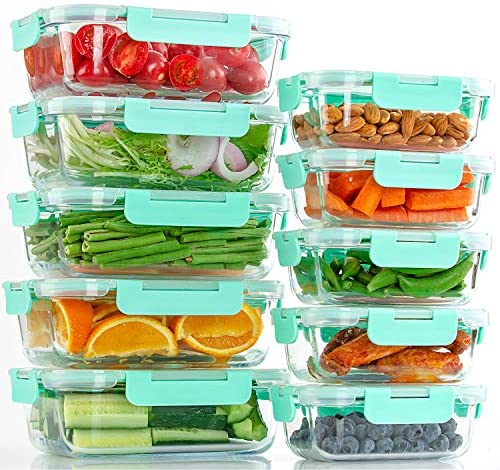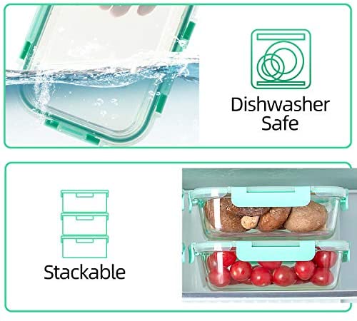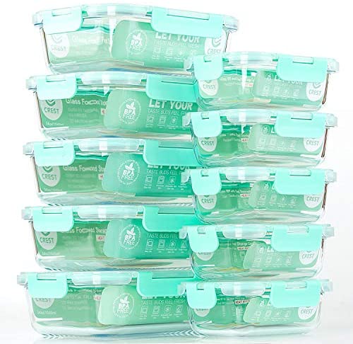 10-Pack Glass Containers for Food Storage with Lids [ Rectangle, Teal ]