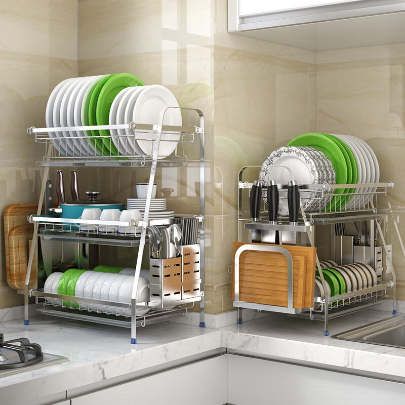 304 Stainless Steel Dish Rack Countertop Drain Dish Rack Kitchen Storage Holders & Racks Kitchen Supplies