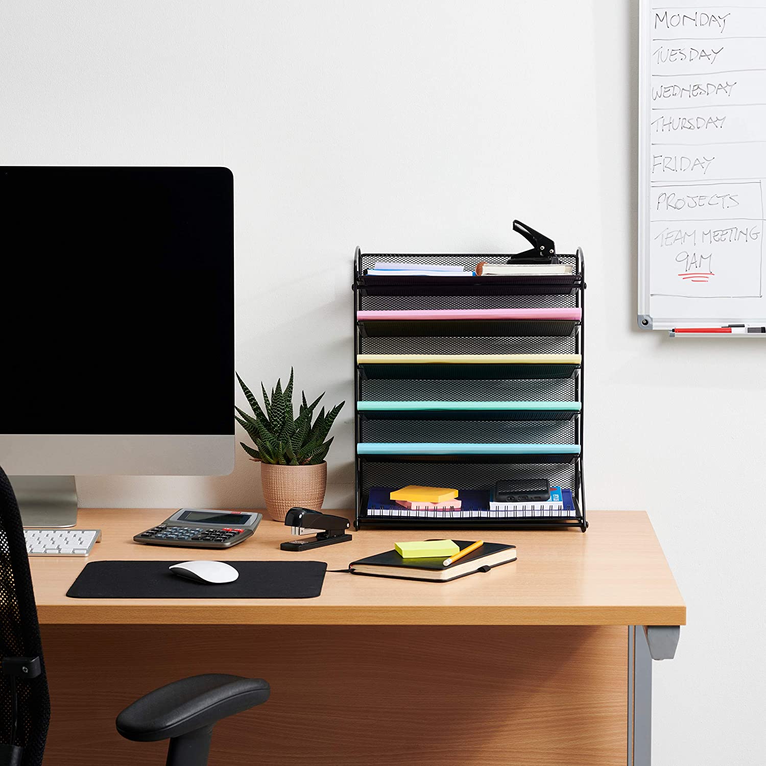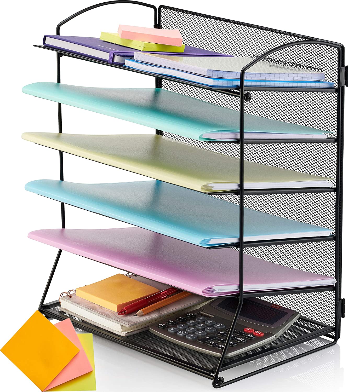 - 6-TIER MAXIMUM STORAGE: Our paper tray desk organiser has a unique 6-Tier design offering more storage than most paper organisers. The black mesh has strong metal construction and powder coat finish.