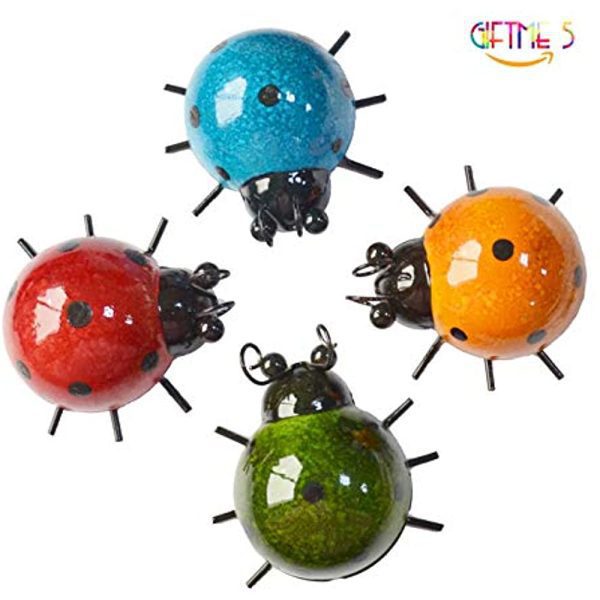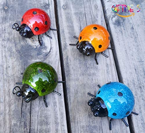 GIFTME 5 Metal Garden Wall Art Decorative Set of 4 Cute Ladybugs Outdoor Wall Sculptures