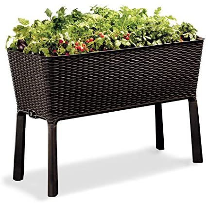 Keter Easy Grow 31.7 Gallon Raised Garden Bed with Self Watering Planter Box and Drainage Plug, Brown