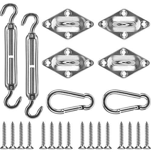 Cosweet 24 Pcs Shade Sail Hardware Kit- 5 Inches 304 Marine Grade Stainless Steel Sun Shade Sail Installation Hardware Kit for Rectangle&Square Sun Shade Sail in Outdoor Patio Lawn Garden