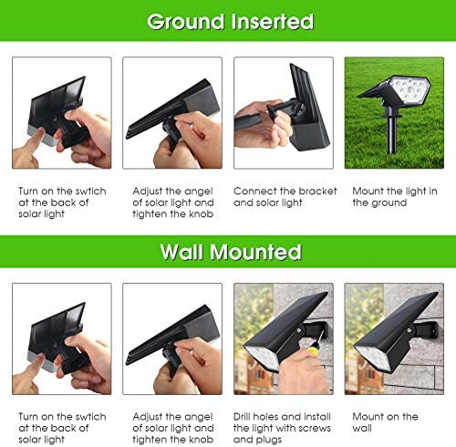 💡2 in 1 Solar lights Outdoor – Stick the solar spotlight into the ground as a path light or mount it on the wall as a wall light. Easy to install and 90°Adjustable solar light , perfect for Patio, Porch, Path, Deck, Pool, Yard, Garden, Garage, Driveway, Pathway,etc.