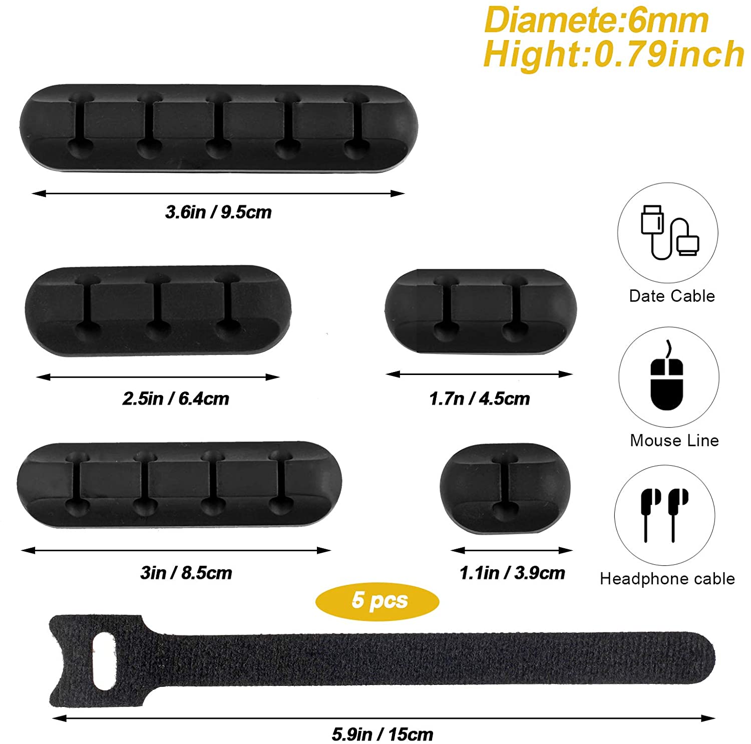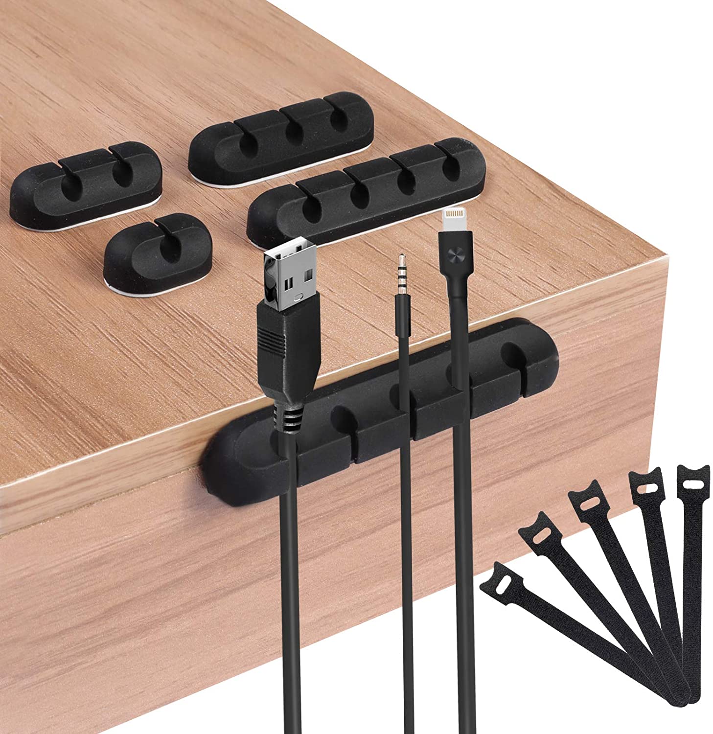 • 【Multi-combination design】-5 pack cable clips in 5 different sizes and 5 pcs Cable Ties,,one hole to five holes in different sizes,Suitable for different numbers of cable,enough to keep all your messy cables organized and accessible in the positions you require.
