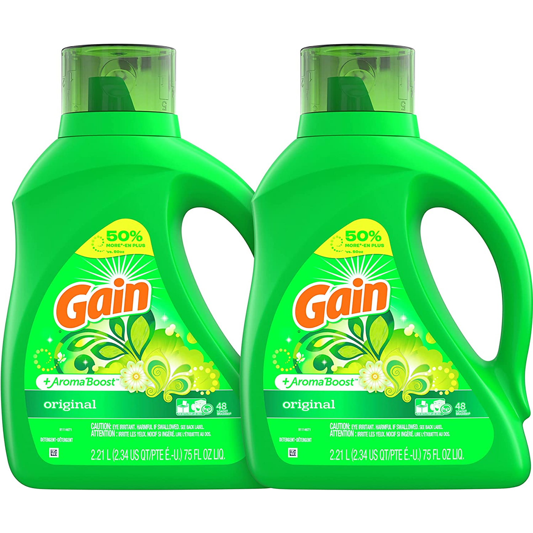 Gain Laundry Detergent Liquid Soap Plus Aroma Boost, Original Scent, HE Compatible, 96 Loads Total, 75 Fl Oz (Pack of 2)