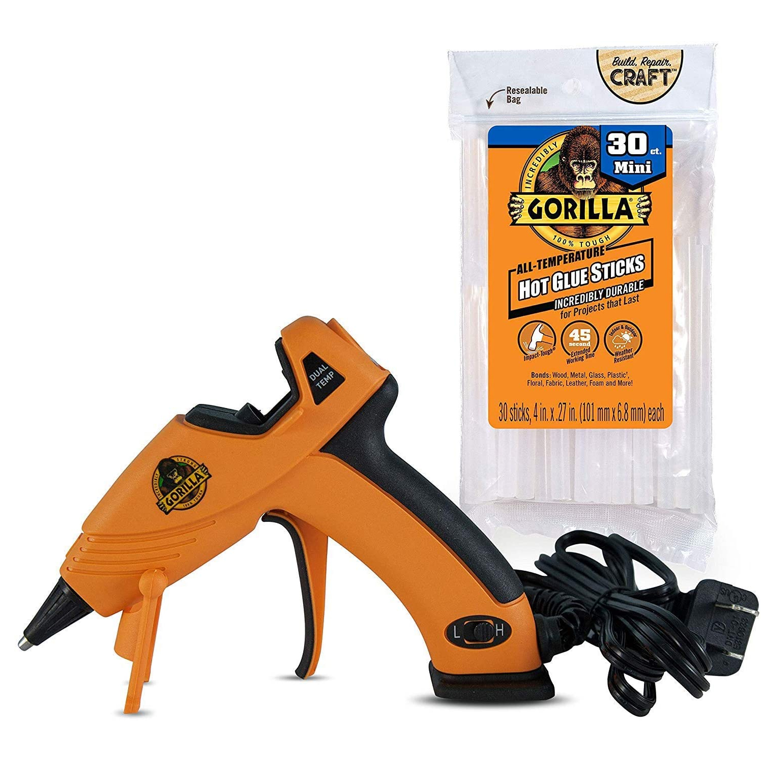 Gorilla Dual Temp Mini Hot Glue Gun Kit with 30 Hot Glue Sticks