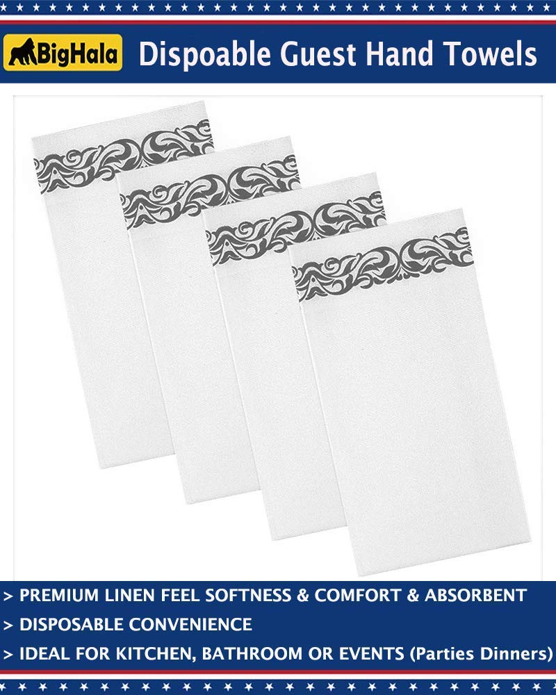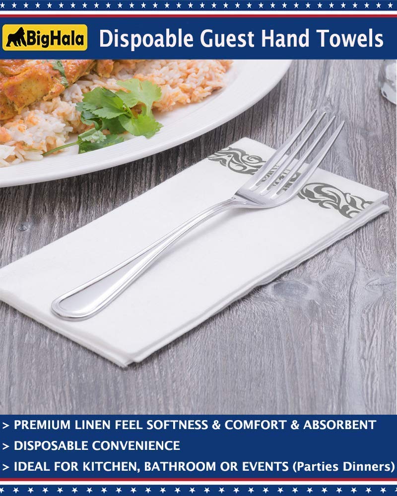 BigHala Decorative and Environmental Elegant Linen Feel Disposable Guest Hand Towels & Cloth Like Luncheon Dinner Napkins.