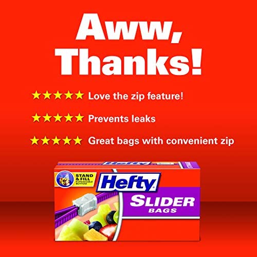 Hefty slider storage bags keep food fresh with an extra-strong seal and the patented MaxLock track that clicks to let you know it’s securely closed. The stand and fill expandable bottom means that the bags stand up for easy loading of food, craft supplies or other household items you’re wanting to organize. Large write-on labels make it simple to label and organize the contents of these resealable gallon bags in your fridge, pantry or closet. Hefty Premium quality and super strength comes with superior savings, offering a better BANG for your buck than similar branded storage bags. These Hefty slider storage bags are made in the USA, BPA free, and available in both quart and gallon size slider storage bags.