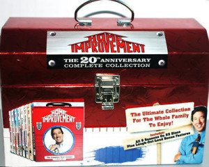 Home Improvement: The 20th Anniversary Complete Collection Box Set is a set of DVDs covering the television program produced by ABC and released on video by ABC Studios. The 25-disc set was released in 2011, and sealed in a Tool Case shape special box. The series follows Tim as he hosts a fictional TV program called Tool Time and goes about his day-to-day tasks. Home Improvement: The 20th Anniversary Complete Collection DVD set covers eight seasons. The 25-disc set includes all of the originally aired programming plus bonus features such as bloopers, commentary, featurettes, and more. The family comedy is played out over 4700 minutes of run time. Home Improvement: The 20th Anniversary Complete Collection DVD is formatted as an AC-3 box set that is shot in full color in NTSC with subtitles and full-screen playback. Subtitles are available for the show in English. The DVD supports an aspect ratio of 1.33:1. The show stars Tim Allen, Patricia Richardson, Earl Hindman, Taran Noah Smith, and Jonathan Taylor Thomas. The program is a family comedy series that centers around the fictional character Tim, his family, and his work as a “Tool Man”.