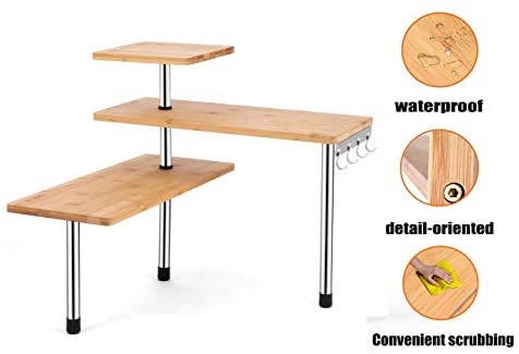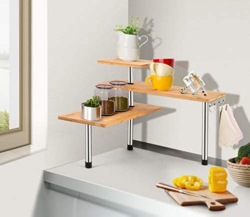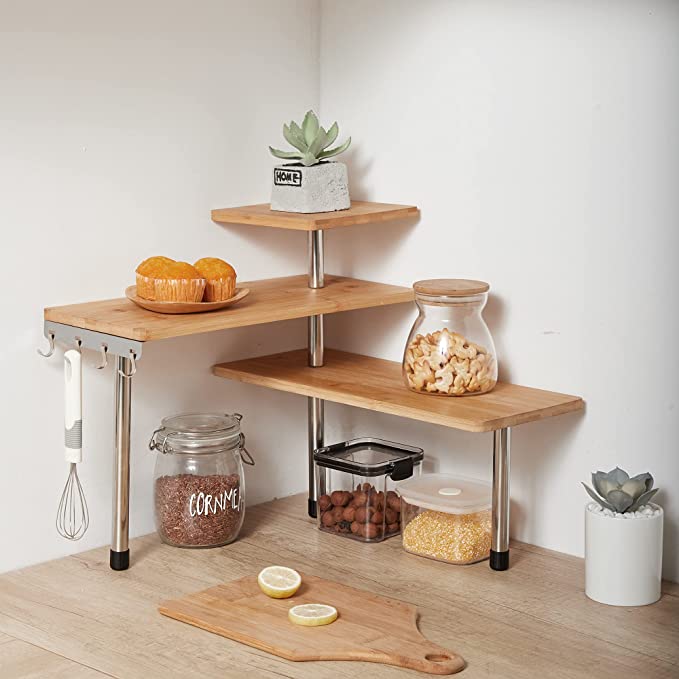 {FASHION DESIGN } Unique design and natural color, this desktop shelf perfect match your furniture in your home. Compact three-storey design, decorative and any room greatly increased or emphasized, each block can be installed in two ways.This shelf can help you make full use of the space in your room. It can be used in kitchen, living room and office.Adjust position of each tier based on features of your stuff or space.