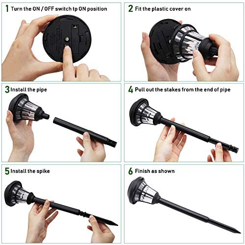 Powered by free solar energy and no electricity required. The solar panel supports long-term operations. They will come on automatically at night and turn off automatically at dawn. There is a switch ON/OFF under the light cover, make sure you turn the switch to ON position before charging. Measures: 3.3 x 3.3 x 13.4 inches per lights.