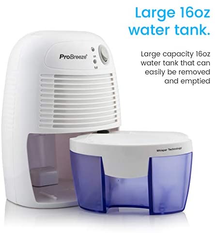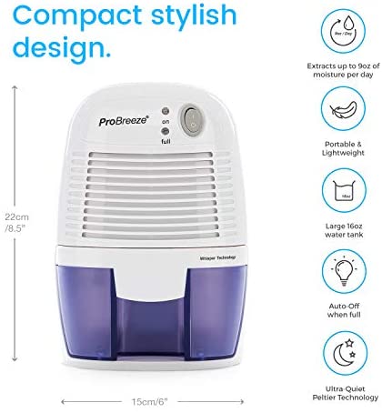 Home Home and Kitchen Pro Breeze Electric Mini Dehumidifier, 1200 Cubic Feet (150 sq ft), Compact and Portable for High Humidity in Home, Kitchen, Bedroom, Bathroom, Basement, Caravan, Office, RV, Garage with Auto Shut Off