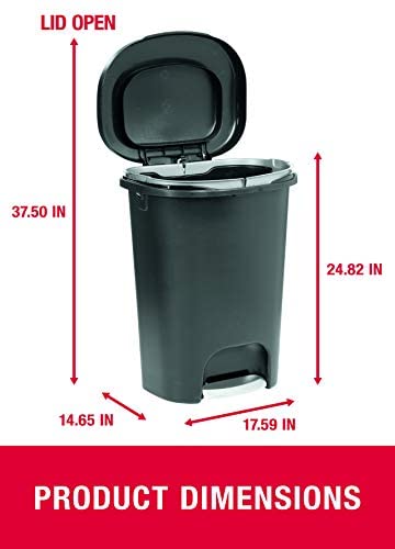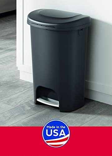 Rubbermaid 13 gallon black step-on trash can for home, kitchen, and bathroom.