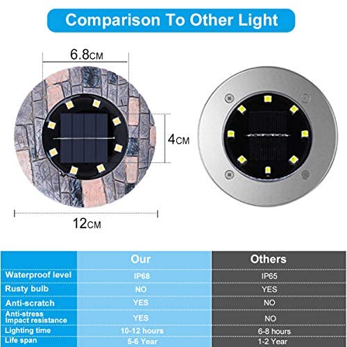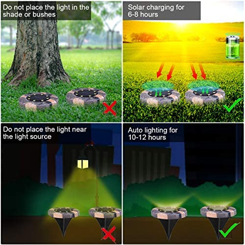 ♻ They’re Eco-Friendly–Photovoltaic cell absorb sunlight during the day to charge the batteries, an inner sensor automatically illuminates at dusk. Upgrade solar garden lights have larger battery capacity (600MAH ) with an incredible energy-economy, which mean solar pathway lights can work longer than traditional solar disk lights, solar lights can work 10-12h after 6-8 hours of full charging. It’s great since you also want a solar outdoor lights that is capable of working throughout the night.