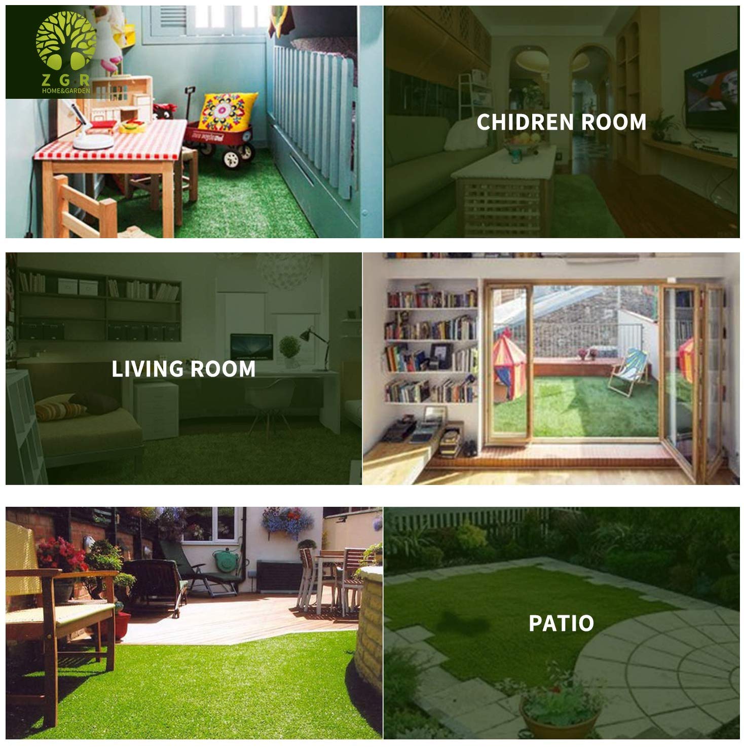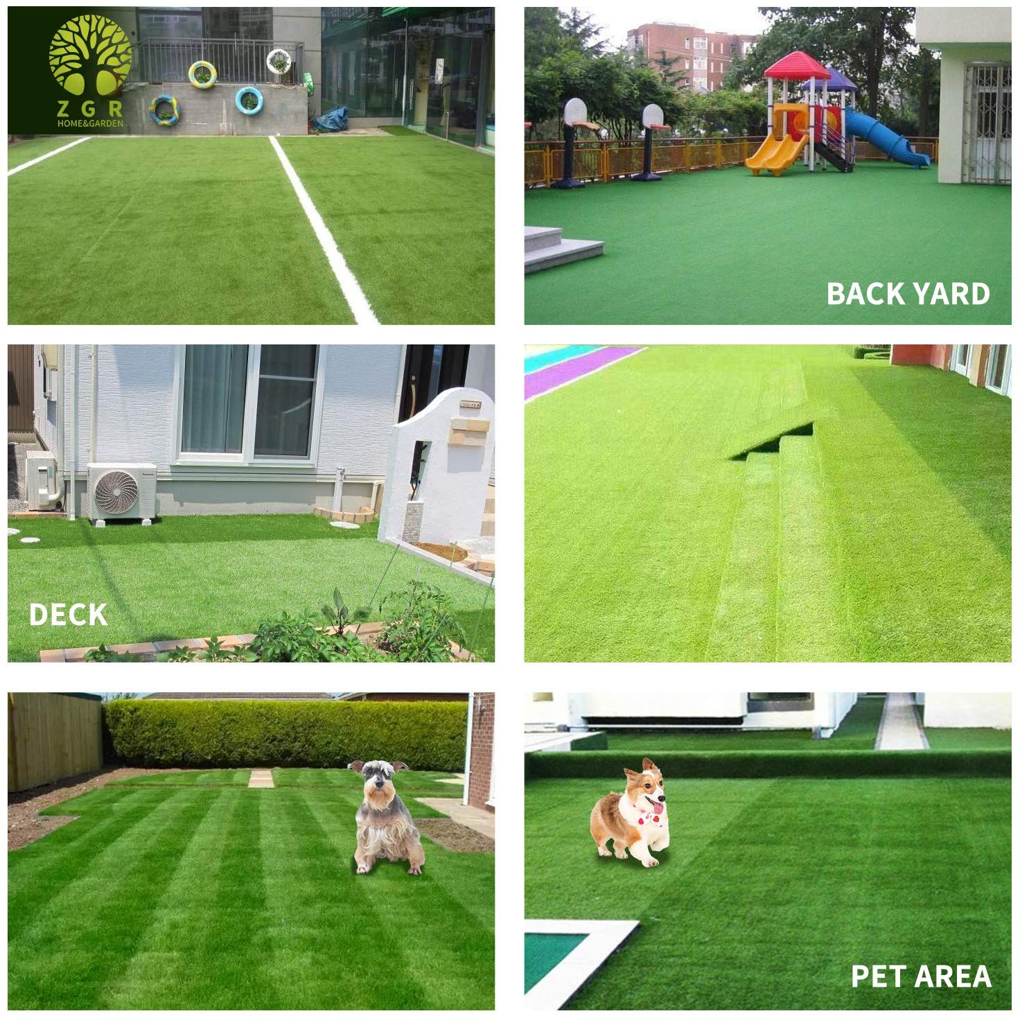 ZGR Artificial Garden Grass, 6′ x 10′ (60 Square ft) Premium Lawn Turf, Realistic Fake Grass, Deluxe Synthetic Turf, Thick Pet Turf, Perfect for Carpet Doormat Indoor/Outdoor Landscape, Non Toxic