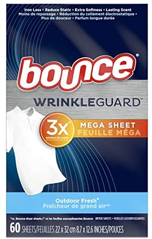 Bounce WrinkleGuard Mega Dryer Sheets, Fabric Softener and Wrinkle Releaser Sheets, Outdoor Fresh Scent, 120 Count (Pack of 2, 60 Count Each)
